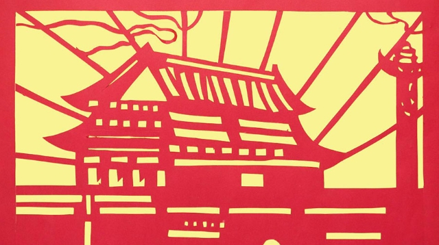 Des drapeaux chinois en papiers découpés pour célébrer la Fête nationale