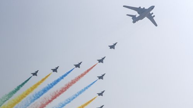 Les habitants de Beijing ont eu un aperçu du prochain défilé de la Fête nationale en Chine, le 1er octobre, aune formation aérienne effectuant une répétition au-dessus du centre-ville dimanche matin.