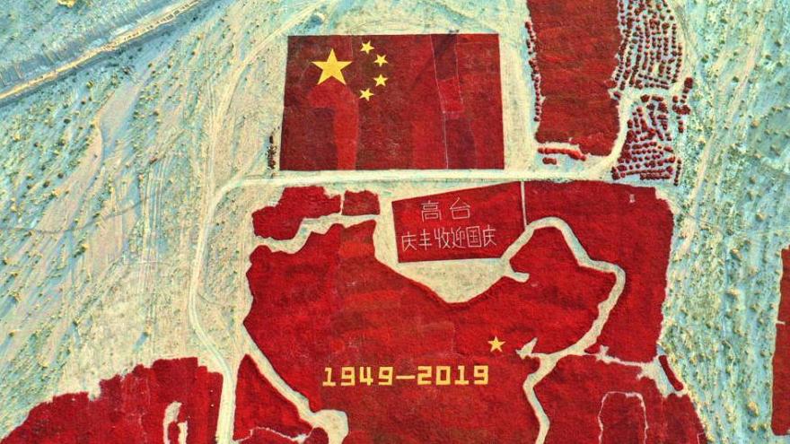 Le 23 septembre marque le deuxième « festival de la récolte » en Chine. Les paysans de la ville de Zhangye (province du Gansu) ont réalisé une carte de la Chine et un drapeau national avec du piment et du maïs, et ce sur une superficie totale de 30 000 mètres carrés, afin de célébrer la récolte et l’arrivée de la Fête nationale.