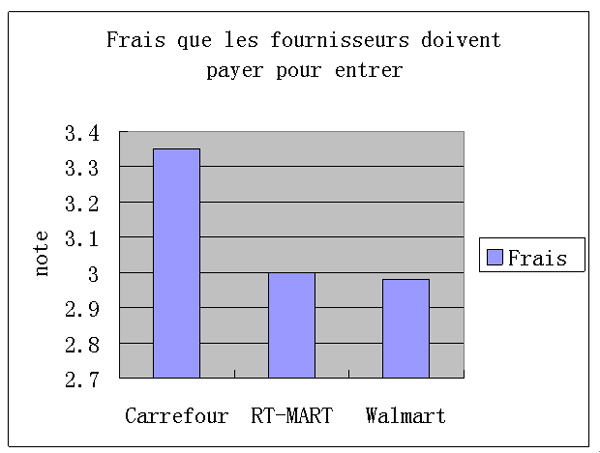 Pour ce qui est des frais imposés aux fournisseurs, Carrefour est le champion. Puisque les frais exigés par les hypermarchés diminuent le profit réalisé par les fournisseurs, Carrefour semble donc être la pire chaîne pour ce qui est du ratio performance/prix.
