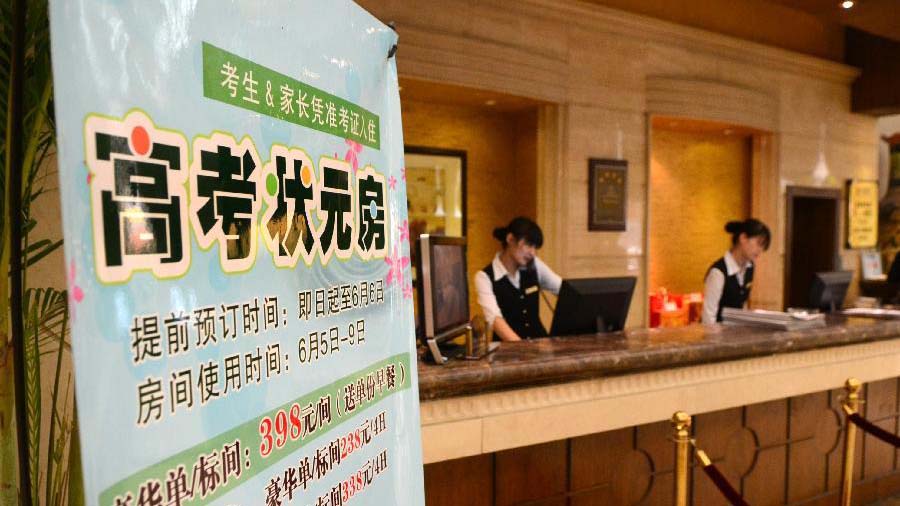 6月6日,郑州市某酒店打出“高考状元房”的宣传广告。