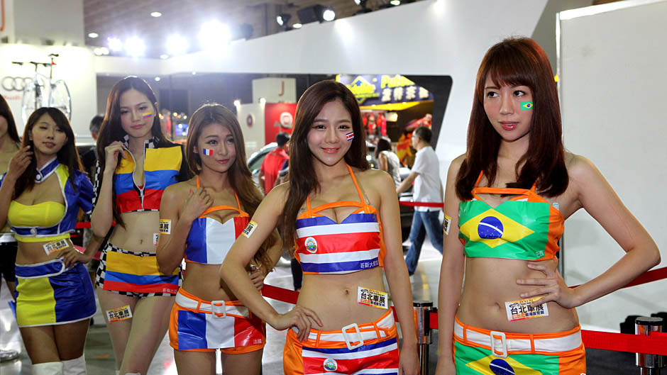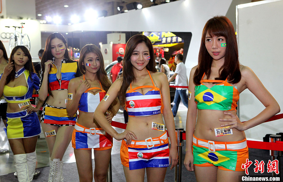 Le Salon automobile de Taipei 2014 a débuté le 4 juillet en présence de plusieurs dizaines de grands constructeurs, tels que Rolls-Royce, Ford ou Audi. En cette période de Coupe du monde de la FIFA, les hôtesses ont revêtu des tenues aux couleurs des équipes de la compétition.