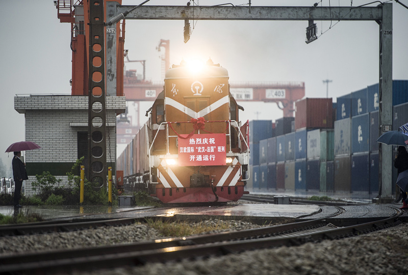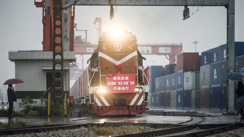 Ce train, qui transporte des produits mécaniques, électroniques et chimiques, inaugure la ligne de fret ferroviaire Wuhan-Lyon.