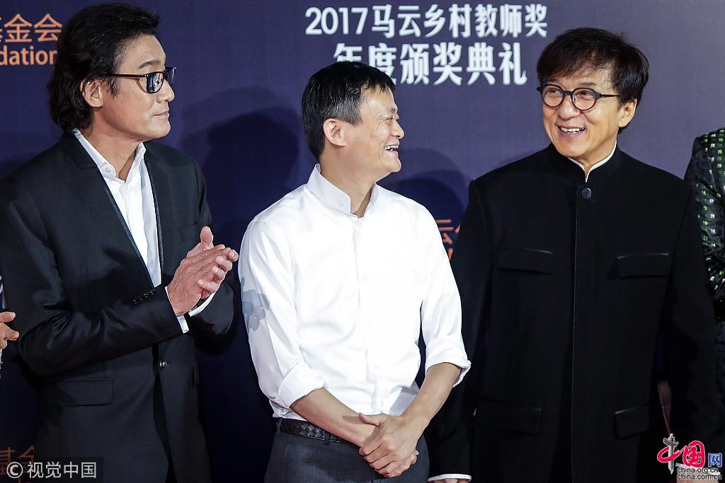 Tony Leung et Jackie Chan, stars hongkongaises du cinéma, aux côtés de Jack Ma.