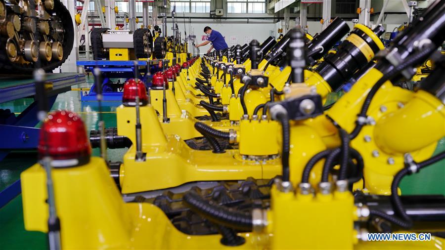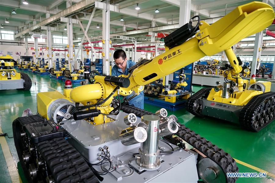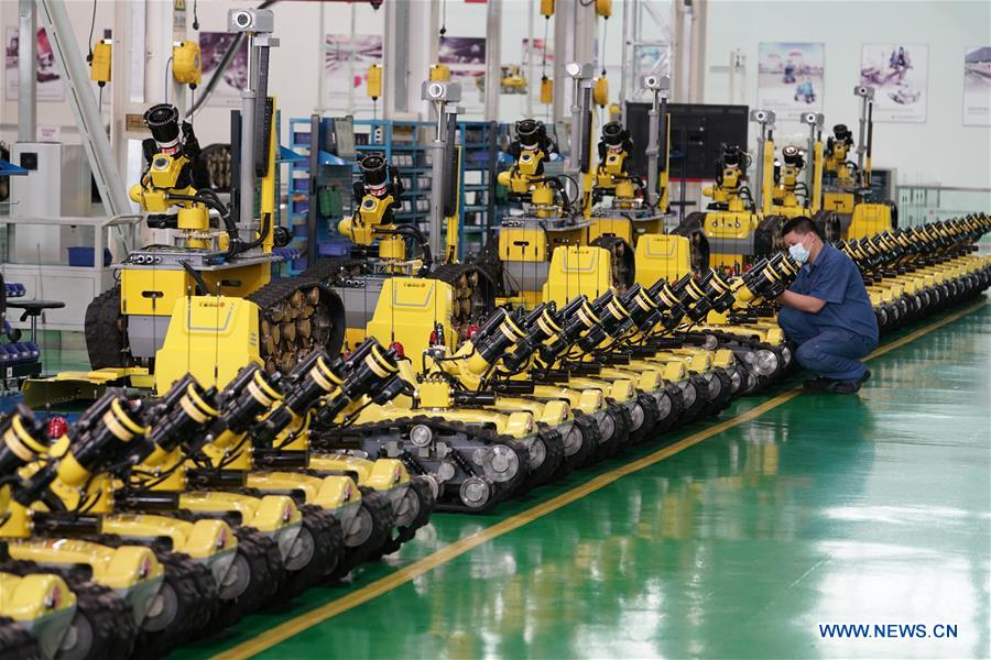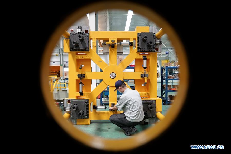 Un ouvrier vérifie un produit dans un atelier de la zone de développement industriel de haute technologie de Tangshan, dans la province du Hebei (nord de la Chine), le 17 juillet 2020. La zone de développement industriel de haute technologie de Tangshan a formé une industrie de la robotique avec 62 robots et entreprises associées. (Mu Yu / Xinhua)