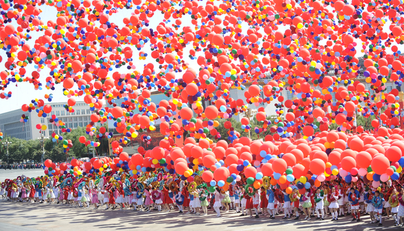Des chars décorés de modèles réduits de monuments de 31 provinces, régions et municipalités autonomes, de Hong Kong, de Macao et de Taiwan