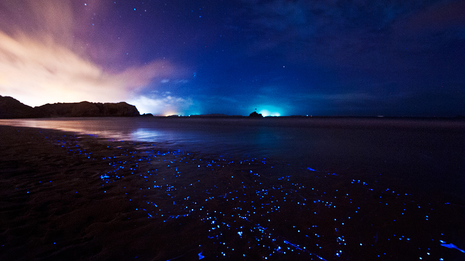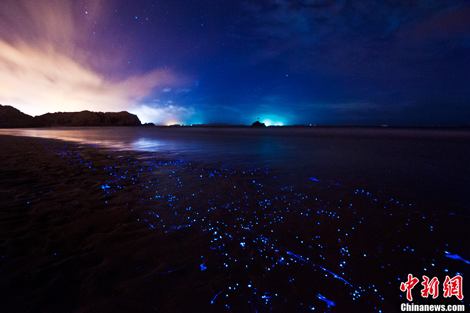 Cette plage située dans le sud de la Chine et sur laquelle sont visibles des points de lumière bleus ressemble étrangement à l'univers merveilleux du film Avatar.