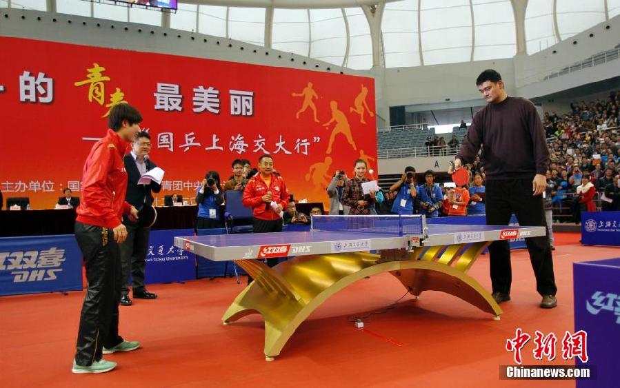 - Yao Ming joue au tennis de table à l'Université Jiaotong de Shanghai