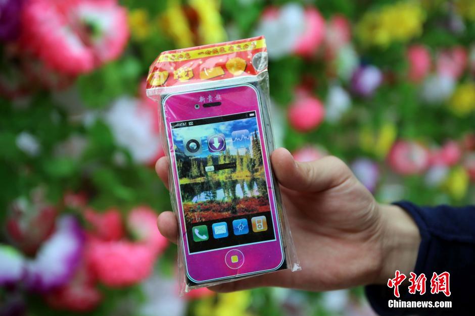 - À l'approche de la fête de Qingming, la Toussaint chinoise, des objets d'offrandes quelque peu inhabituels font leur apparition sur les marchés. Photo prise le 2 avril à Taiyuan (Shanxi), des répliques d'iPhone et d'iPad chez les vendeurs d'objets d'offrandes.
