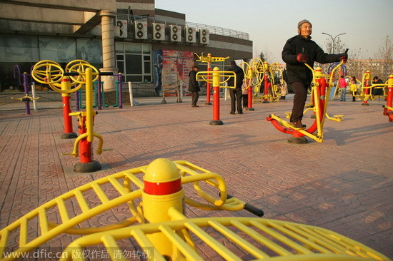 Des équipements de remise en forme et d'exercice dans un quartier de Beijing en janvier 2007.