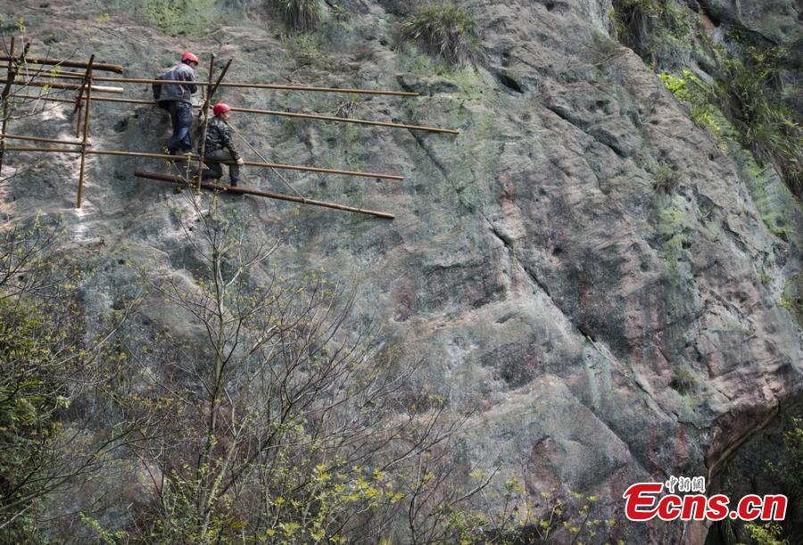 French.china.org.cn | Mis à jour le 15. 04. 2015 | Mots clés : La dangereuse vie,bâtisseurs,falaises