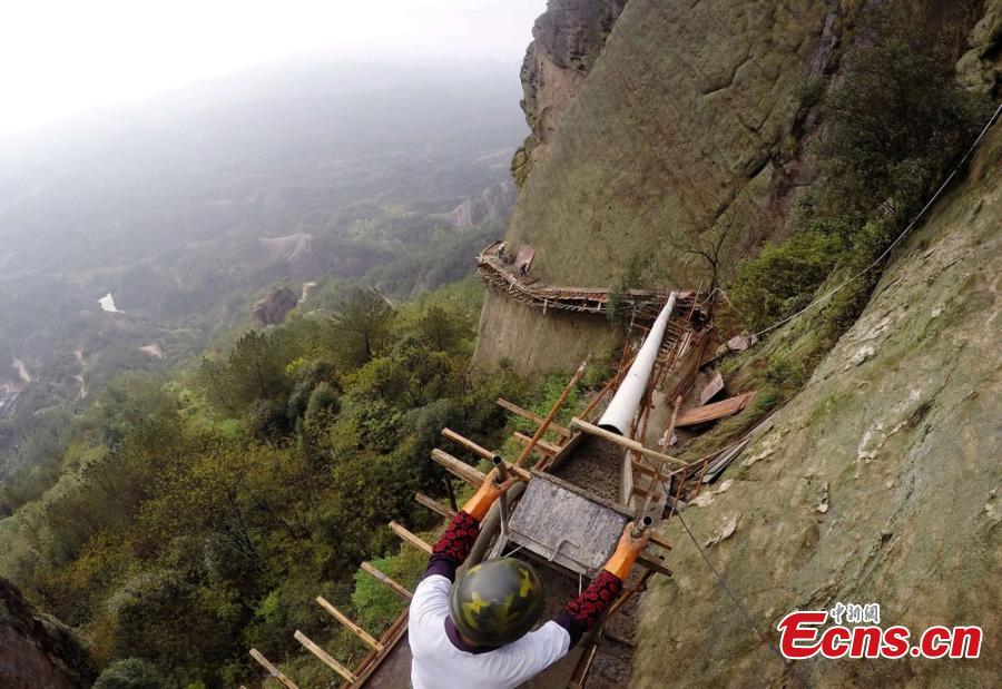 French.china.org.cn | Mis à jour le 15. 04. 2015 | Mots clés : La dangereuse vie,bâtisseurs,falaises