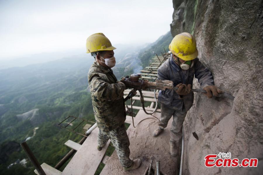French.china.org.cn | Mis à jour le 15. 04. 2015 | Mots clés : La dangereuse vie,bâtisseurs,falaises