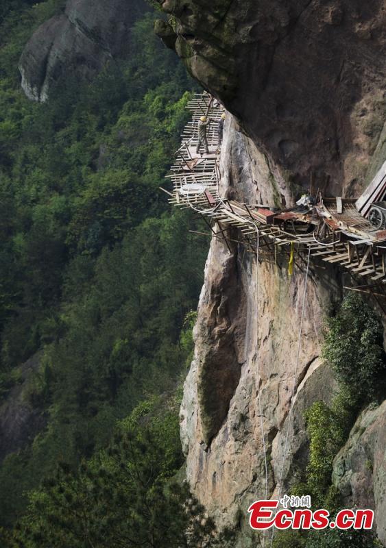 French.china.org.cn | Mis à jour le 15. 04. 2015 | Mots clés : La dangereuse vie,bâtisseurs,falaises