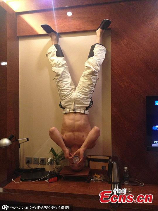 - Sur cette photo non datée, Yi Long (en chinois, « un dragon »), maître du kungfu Shaolin chinois, médite suspendu à un arbre. Yi Long, originaire de la ville de Dezhou dans la province du Shandong, s'appelait à l'origine Liu Yilong et est devenu célèbre après avoir battu de nombreux challengers, notamment étrangers, lors d'une émission de télévision consacrée au kungfu.