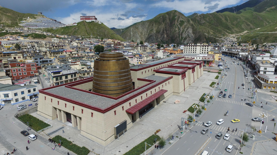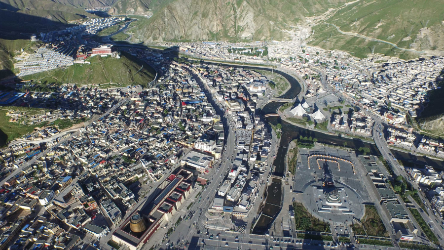 Une vue panoramique de la préfecture autonome tibétaine de Yushu, dans la province chinoise du Qinghai (nord-ouest), le 27 juillet 2015. Un séisme de magnitude 7,1 a secoué Yushu en avril 2010. Après cinq ans de travaux, de nouvelles infrastructures et sculptures et de nouveaux magasins y ont été construits. (Photo : Wu Gang)