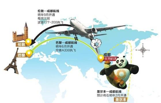 Il s'agit de la deuxième ligne aérienne directe reliant Chengdu et l'Europe. Le premier vol direct entre Chengdu et Francfort avait été lancé en 2013.