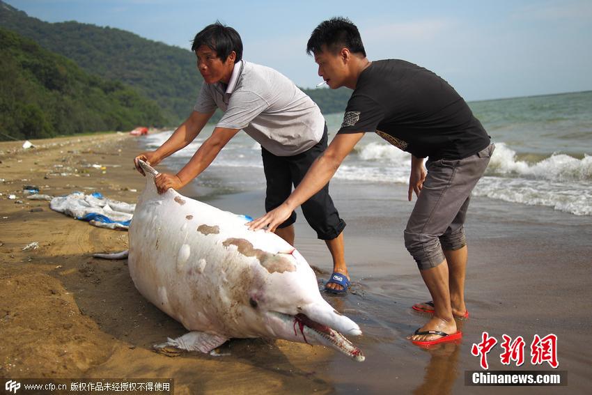 French.china.org.cn | Mis à jour le 22. 09. 2015 | Mots clés : dauphin blanc de Chine,retrouvé mort