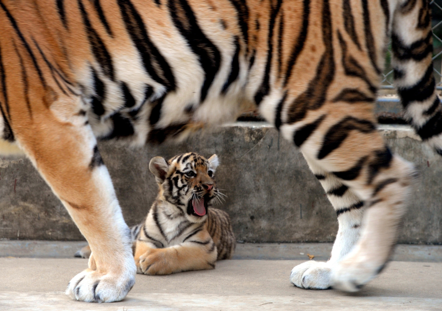 - Un bébé Tigre de Sibérie s'amuse avec sa mère dans un zoo à Suzhou, dans la province chinoise du Jiangsu (est), le 18 octobre 2015.