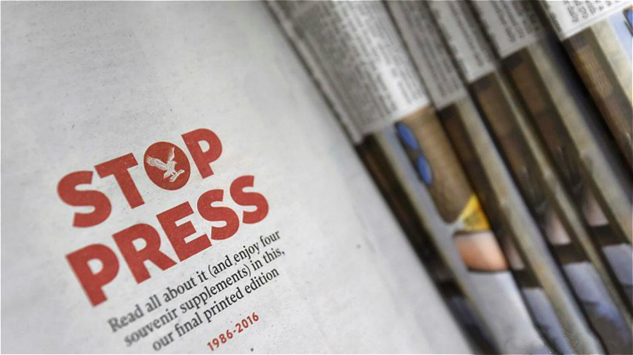 C'est une poignante première page enveloppante portant les simples mots « STOP PRESS » en lettres rouges sur fond blanc, suivies par une phrase, « Lisez tout sur ce sujet dans ce numéro, notre dernière édition imprimée - 1986-2016 », qui a annoncé la nouvelle aux lecteurs.