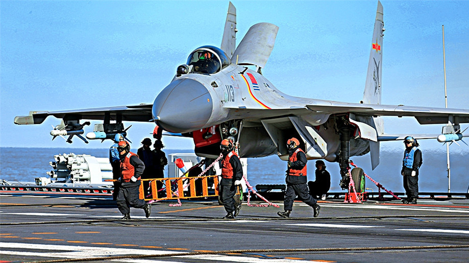 Le pont d'envol du porte-avions est surnommé « l'espace de 1,8 hectare le plus dangereux du monde ». Mais à bord du porte-avions Liaoning, les marins en uniformes rouges, pourpres, bruns, jaunes et verts, le transforment quotidiennement en bel arc-en-ciel.