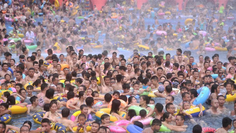 Une piscine noire de monde, le 24 juillet à Chongqing.