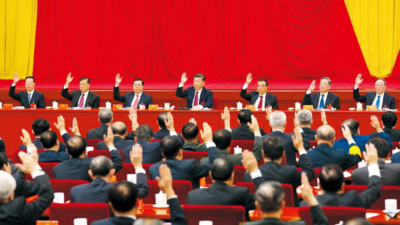 Le président Xi Jinping et d'autres dirigeants d'Etat votent lors de la 6ème session plénière du 18ème Congrès du Comité central du Parti communiste chinois qui s'est tenue à Beijing cette semaine. Tous les membres du Parti ont été appelés à s'unir de manière proche autour du Comité central avec Xi Jinping « en tant que noyau ».