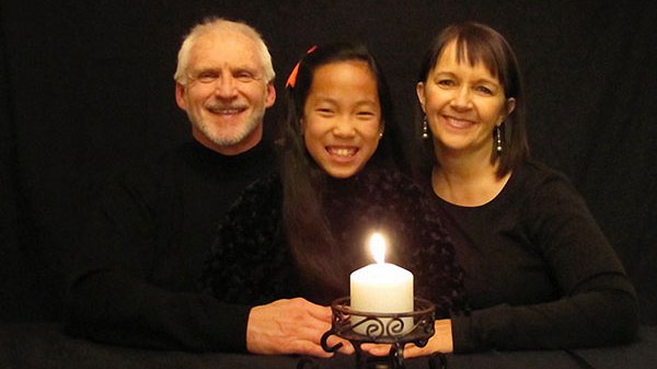 Greg et Cathy Crowell, deux Canadiens, et Hosanna, une enfant abandonnée qu'ils ont adoptée dans une maison de bienfaisance de la province du Guizhou en 2007.
