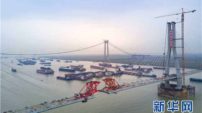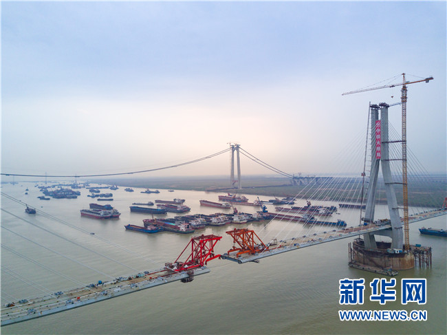 Le pont de l’autoroute Hangzhou-Ruili, qui passe au-dessus du lac Dongting, débute à l’est dans le quartier d’habitation de Jijiahu, et aboutit à l’ouest à Luweichang, dans le quartier de Junshan, après avoir franchi le lac Dongting. D’une longueur totale de 2 390 mètres et d’une portée principale de 1 480 mètres, il est le 7e pont à travée du monde et le 3e pont à travée de Chine, ainsi que le 2e pont suspendu à grande travée du monde et le premier pont suspendu à grande travée de Chine.