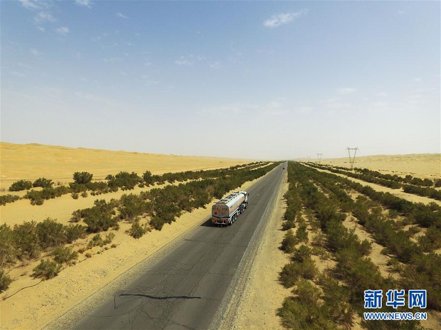 - La route du désert Tarim, construite en 1995, est connue comme la route nord-sud traversant le désert du Taklimakan, et est la plus longue autoroute du monde traversant un désert. En 2005, avec la finalisation de la forêt de protection du désert Tarim, quelques 20 millions d'arbres ont été plantés le long de la route, créant une muraille de verdure en plein désert.