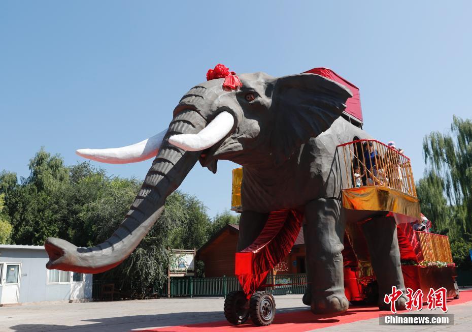 Le 7 septembre, un éléphant mécanique mesurant 8,8 mètres de haut a été exposé dans le parc Yuyuantan à Beijing, attirant de nombreux visiteurs.