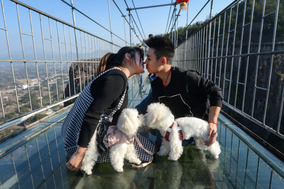 - Le 9 novembre, un rendez-vous de chiens célibataires a été organisé sur le pont en verre de Pingjiang, au Hunan. Les maîtres ont amené leurs animaux de compagnie sur le pont pour ainsi essayer de leur trouver un(e) partenaire.