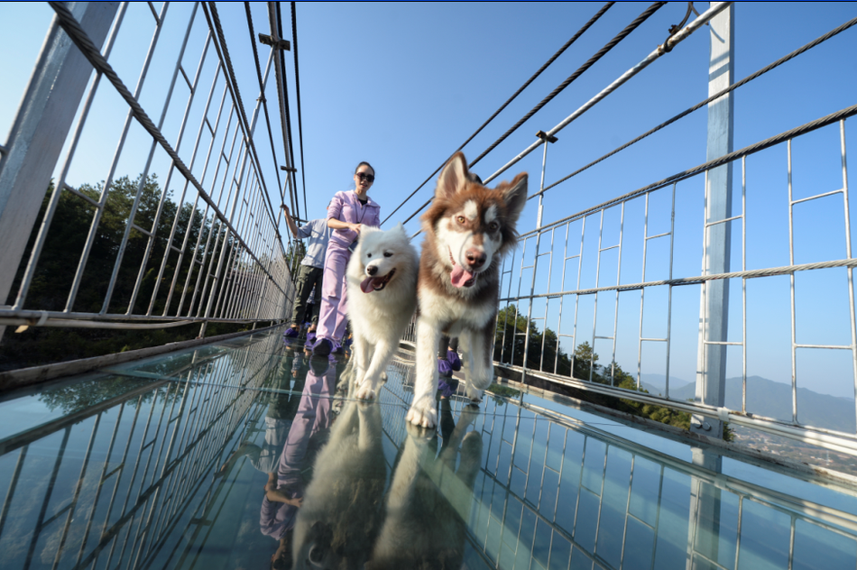 Hunan : Rendez-vous entre chiens célibataires sur le pont en verre de Pingjiang