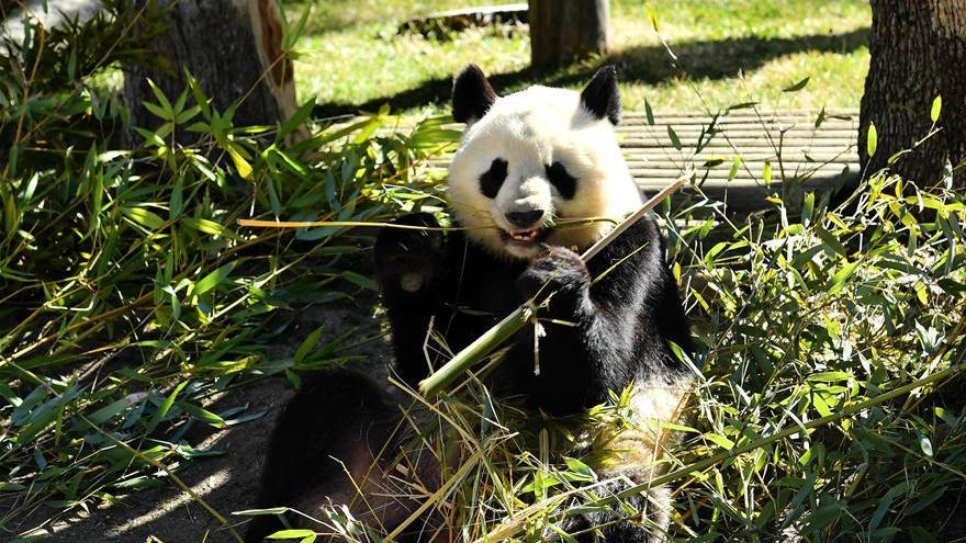 Photo prise le 23 février 2018 montrant un panda géant au Zoo Aquarium de Madrid, en Espagne. L'ancienne reine espagnole Sofia, accompagnée de l'ambassadeur de Chine à Madrid Lü Fan, a présidé vendredi la signature symbolique d'un accord d'extension entre l'Espagne et la Chine sur le projet de prêt et de conservation des pandas géants.