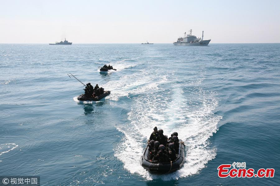 Photos prises de 2009 à 2017 montrant des membres du Commando Jiaolong, une équipe des forces spéciales de la Marine chinoise, en train de s’entraîner dans la province de Hainan. Ces commandos sont responsables de la surveillance militaire et de l’aide aux frappes. Ses membres ont besoin de maîtriser de solides compétences et capacités dans des environnements difficiles, que ce soit sur terre, dans l'air, au-dessus de l'eau et sous l'eau. (Photo / VCG)