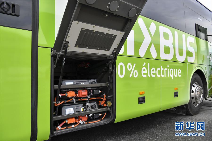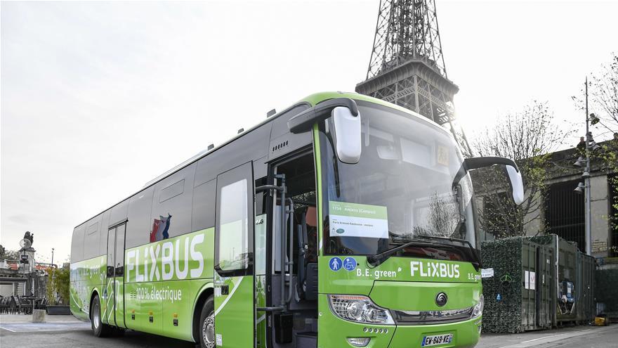 Photos prises le 10 avril à Paris, montrant les bus électriques chinois Yutong qui seront mis en service en France. L'entreprise allemande de transport inter-cités Flixbus a annoncé mardi l'ouverture de la première ligne longue distance testée en bus 100% électrique fourni par le constructeur chinois Yutong, entre Paris et Amiens. Une première sur l'ensemble du réseau européen, couvert par FlixBus, mais aussi dans le monde.