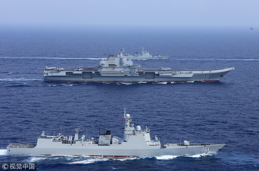 Un groupe aéronaval chinois, avec à sa tête le porte-avions CNS Liaoning, a procédé à son premier exercice de combat dans le Pacifique occidental vendredi et samedi, a annoncé la marine de l'Armée populaire de libération. Il a été rejoint par deux autres navires dans des exercices de combat à longue portée.