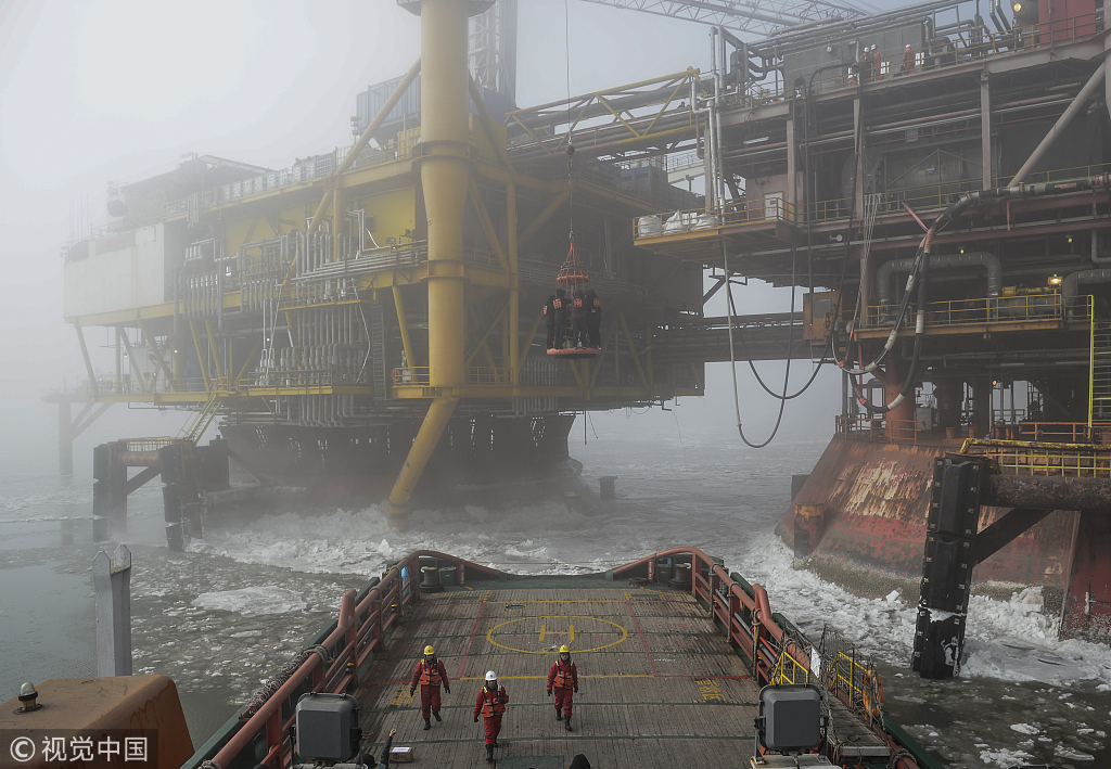 En tant que plate-forme de forage pétrolier offshore la plus au nord de toute la Chine, la plate-forme pétrolière Jinzhou 9-3, ancrée dans la baie de Liaodong, est entourée de glace de mer entre décembre et mars de chaque année. A ce moment, l'épaisseur de la couverture de glace atteint de 20 à 40 centimètres par une température de -20 degrés Celsius. Pour assurer un forage de qualité, une équipe de 100 personnes chargée de briser la glace vit sur la mer pour maintenir la glace à distance.