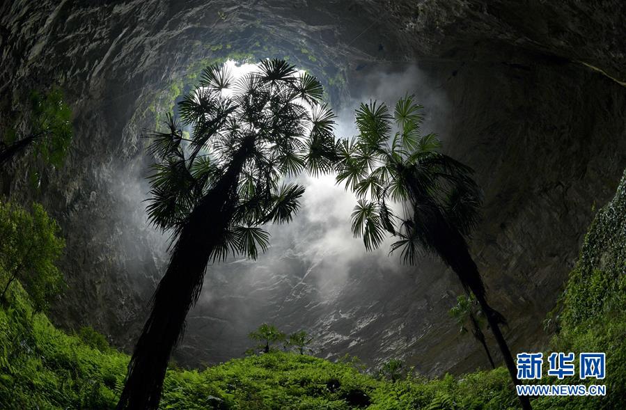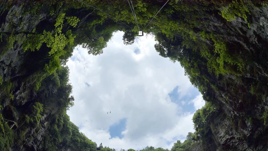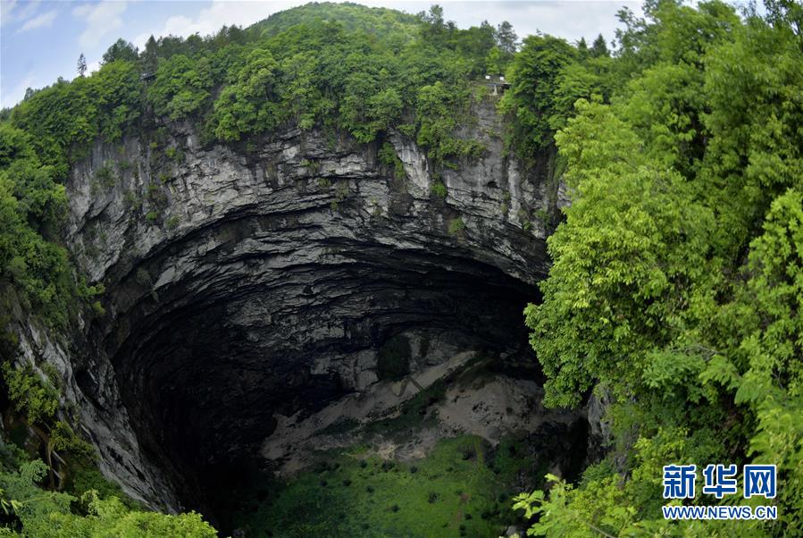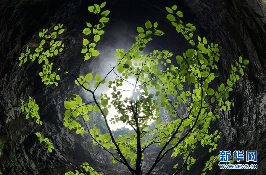 Photo prise le 17 mai à Enshi, dans la province chinoise du Hubei, montrant la beauté d'une grotte géante naturelle. Ce trou gigantesque, de 290 mètres de profondeur, dispose d’un écosystème quasi indépendant grâce à ses reliefs naturels.