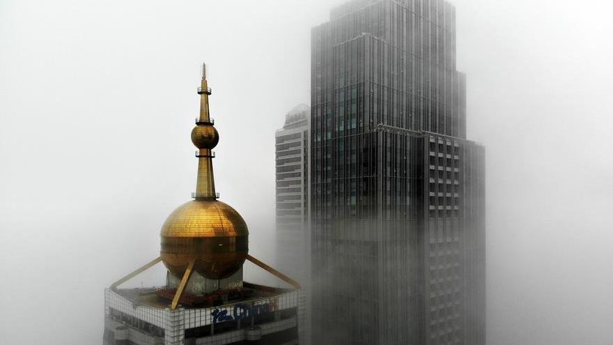 Le 4 juillet, un épais brouillard s’est formé dans le ciel à Qingdao, dans la province chinoise du Shandong, donnant à la ville un air mystérieux.