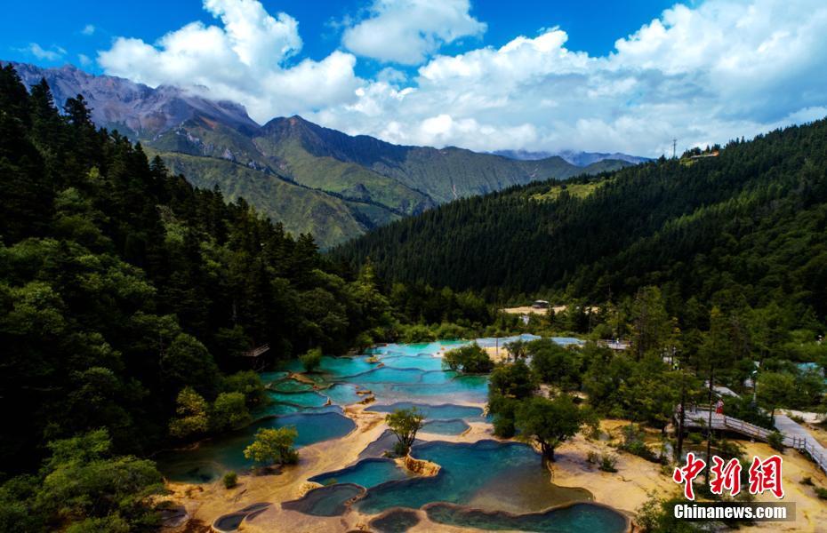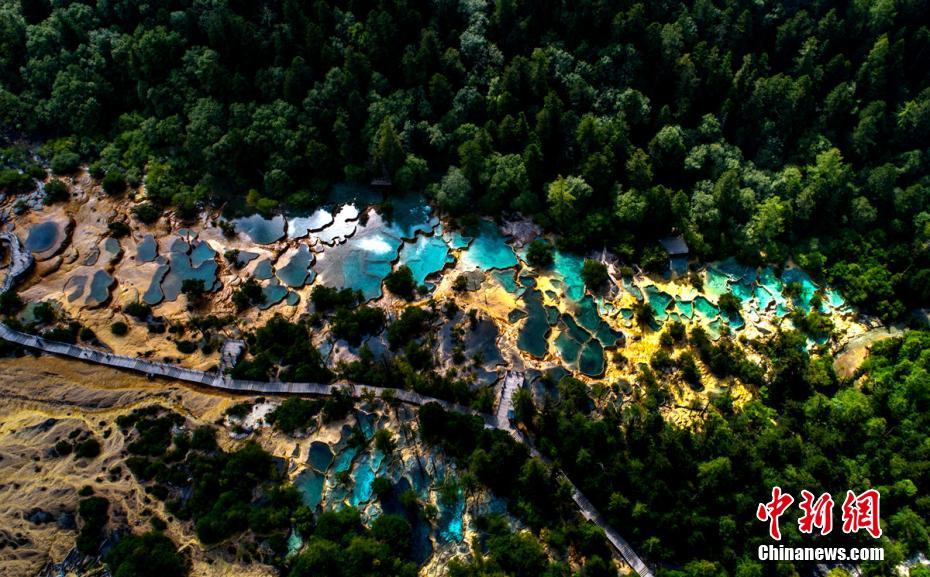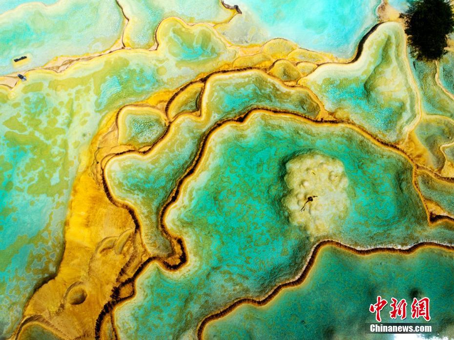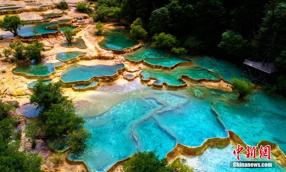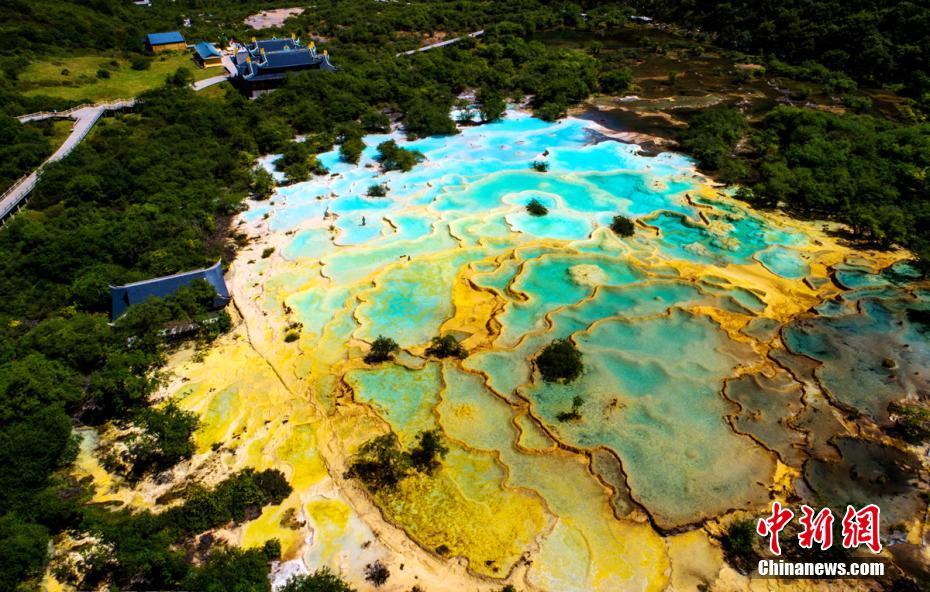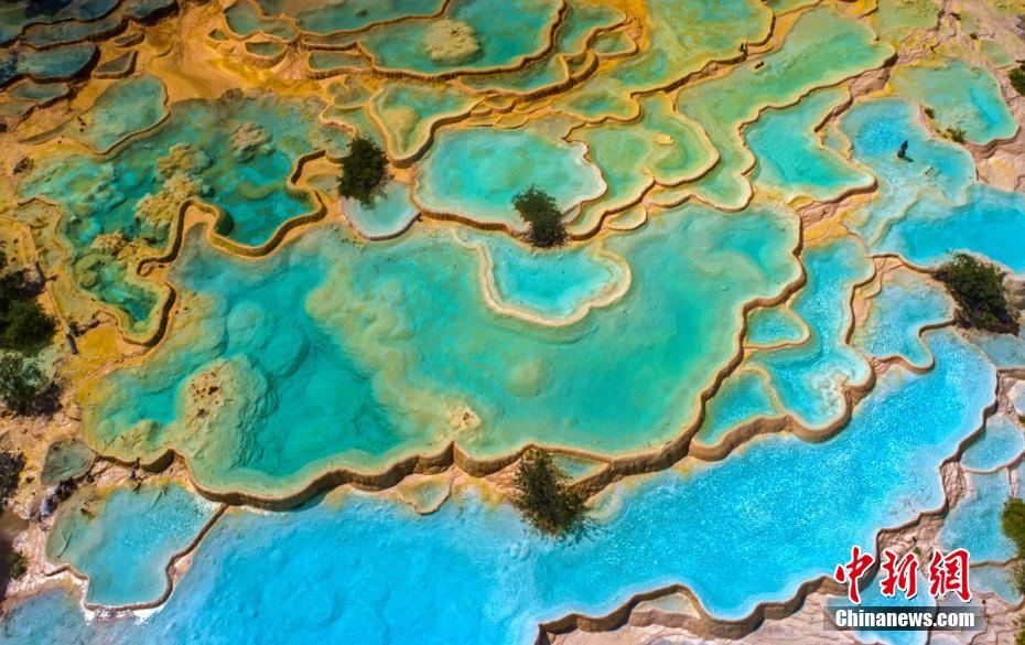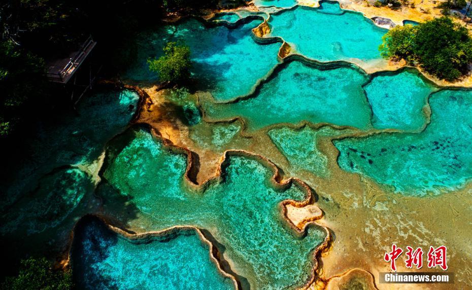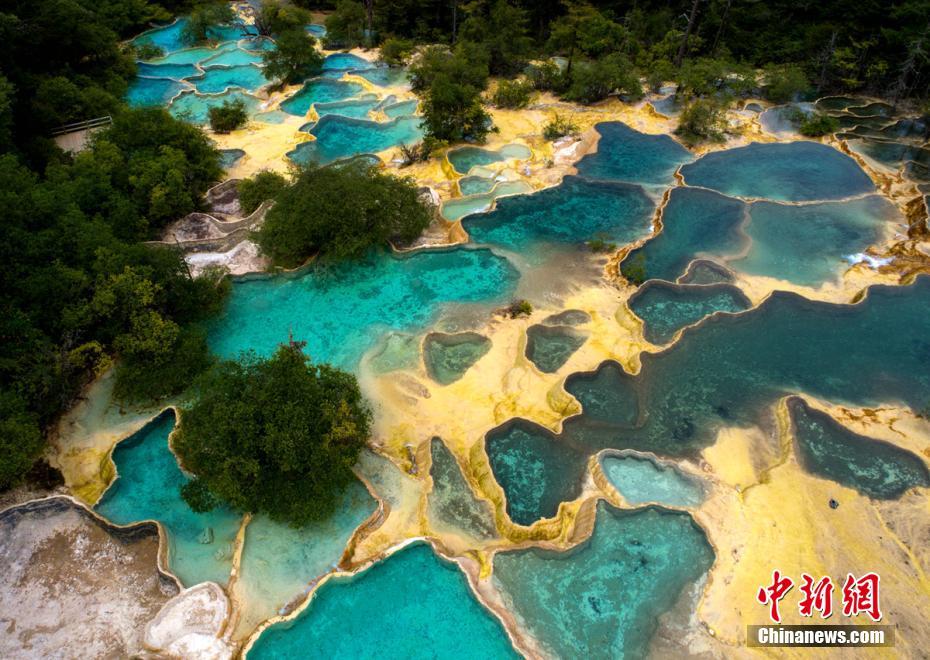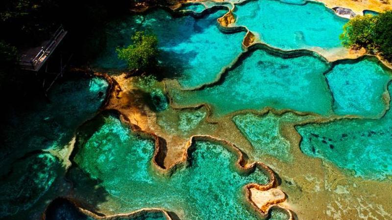 Situé à l’est du plateau Qinghai-Tibet, dans la province chinoise du Sichuan, le xian de Songpan est surnommé « la vieille ville du plateau », où subsistent encore des bâtiments et des murailles de villes très anciennes. Ces photos illustrent la beauté de la réserve naturelle nationale de Huanglong vue du ciel. »