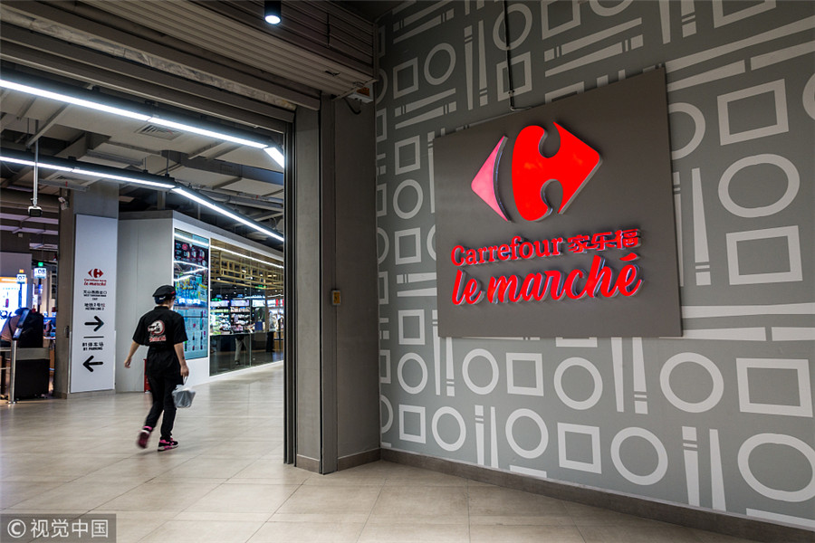 Un employé entre dans un magasin intelligent Carrefour à Shanghai, le 22 mai 2018. [Photo / VCG]