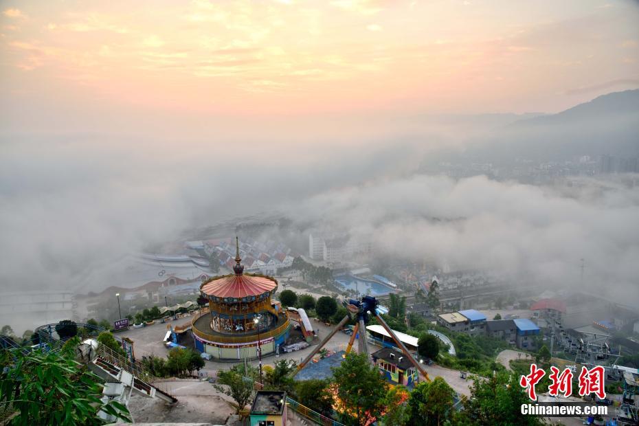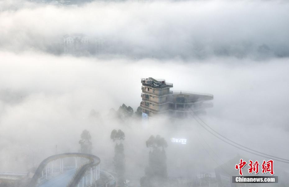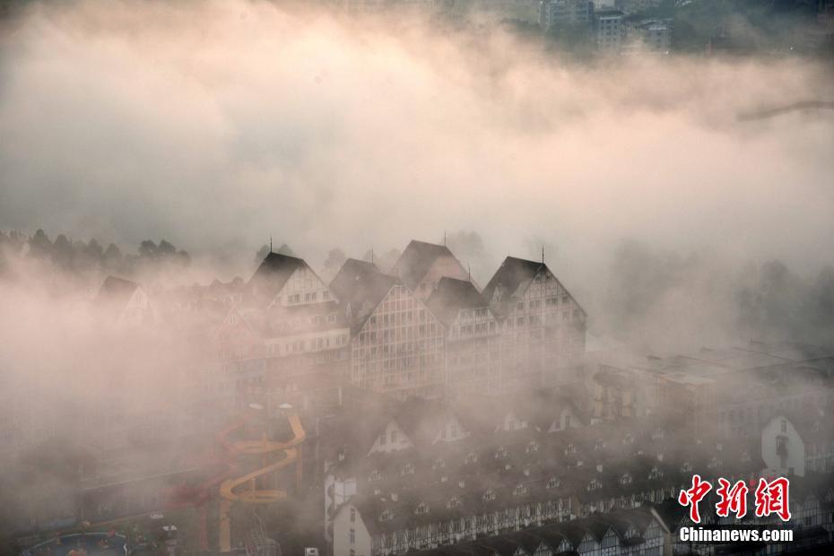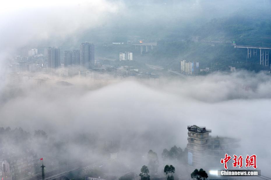 Le 2 juin, du brouillard s'est formé dans le ciel au comté du vin rouge, dans le district de Fuling, à Chongqing, donnant à la ville une atmosphère mystérieuse.