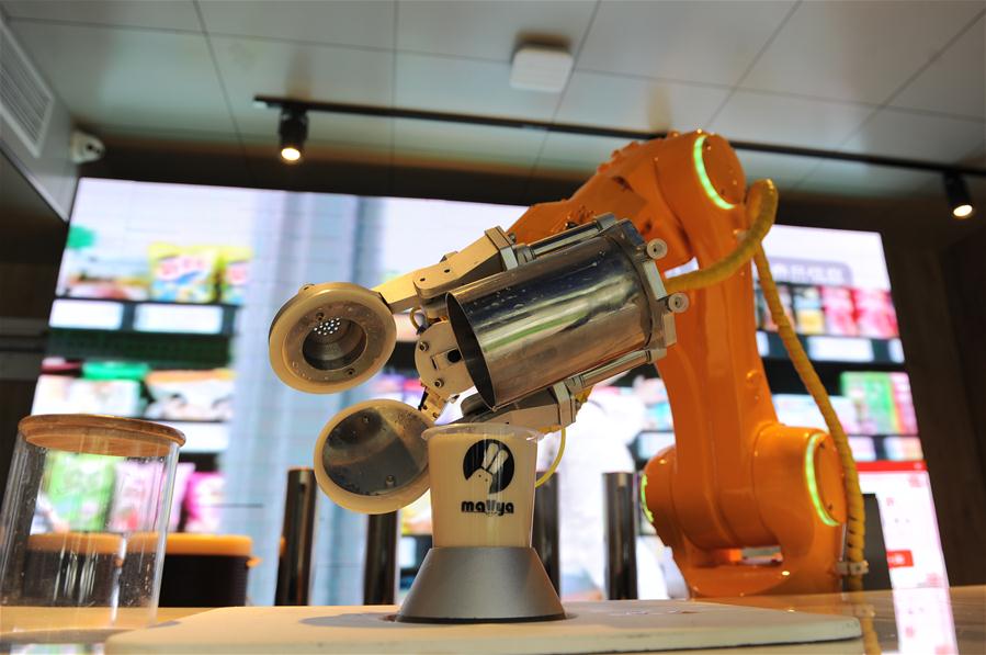 Un robot en train de confectionner une boisson sur le campus de Changyang, dans le district de Yangpu à Shanghai (est de la Chine), le 21 juin 2019.
