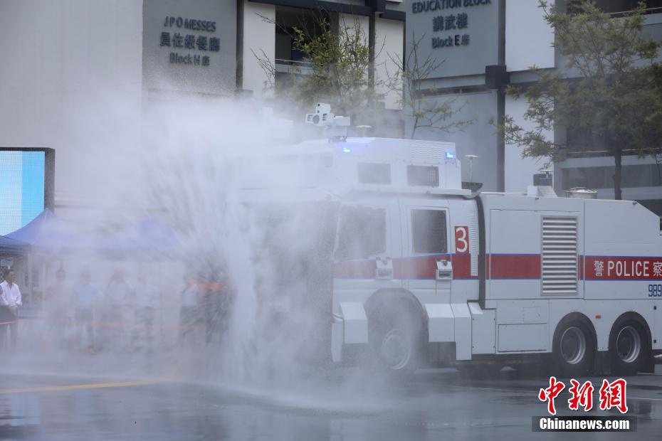 - Photo prise le 12 août, montrant la police de Hong Kong qui a dévoilé pour la première fois au public son canon à eau mobile.