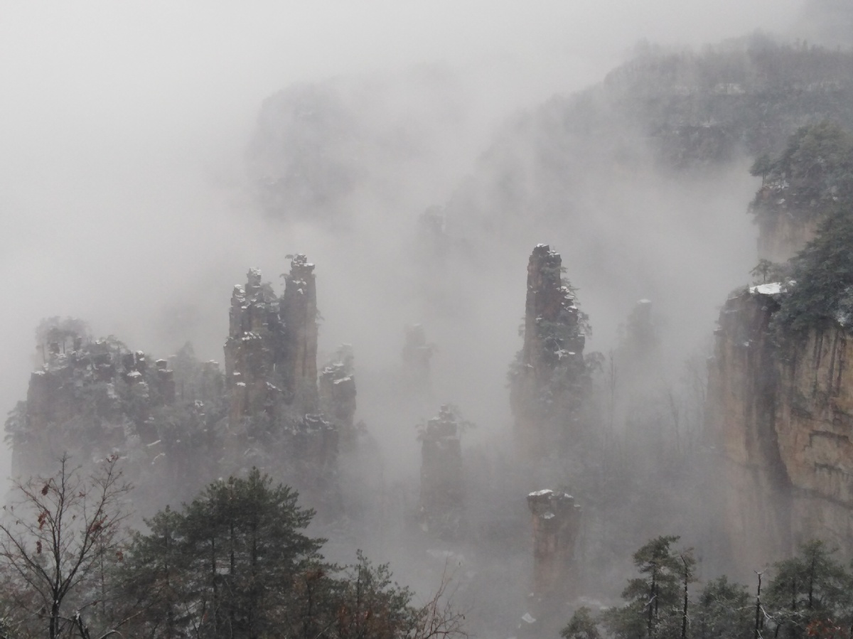 Hunan : la neige transforme le site Wulingyuan en paradis hivernal