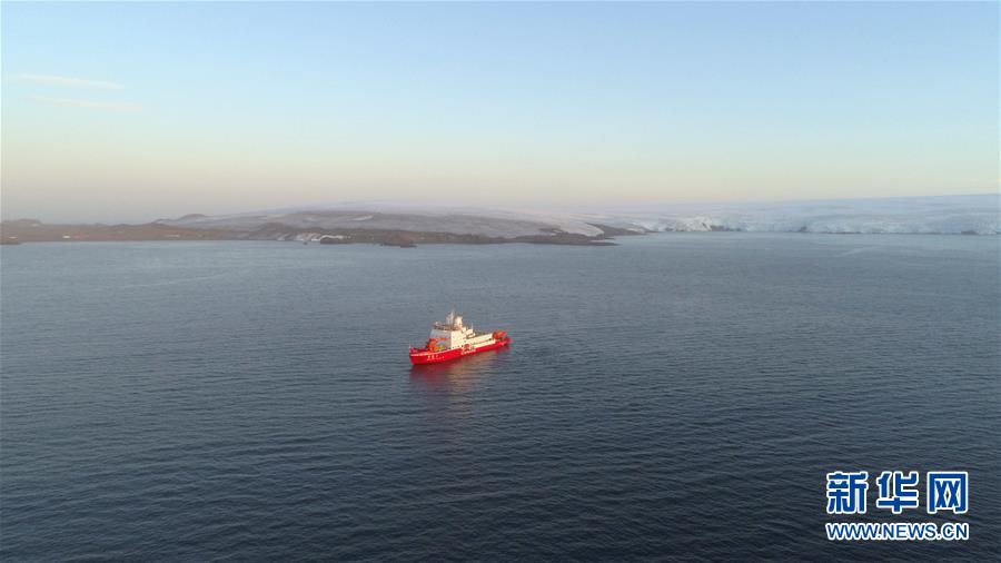 Le brise-glace chinois « Xuelong 2 » (« Dragon des Neiges 2 ») arrive en mer en Antarctique près de la station chinoise Grande Muraille, le 7 février 2020 (photo prise par drone). (Liu Shiping / Xinhua)