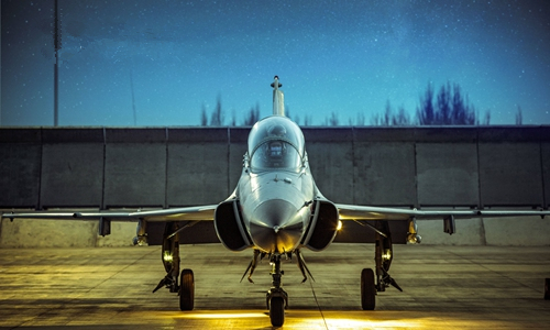 Des avions de chasse et d'entraînement JL-9 attachés à l’Académie d’aviation des forces aériennes de l’Armée populaire de libération chinoise de Xi’an parfaitement préparés pour une nouvelle sortie après avoir reçu une autorisation d’allumage du moteur lors d'une session de formation au vol de nuit le 12 mars 2020.