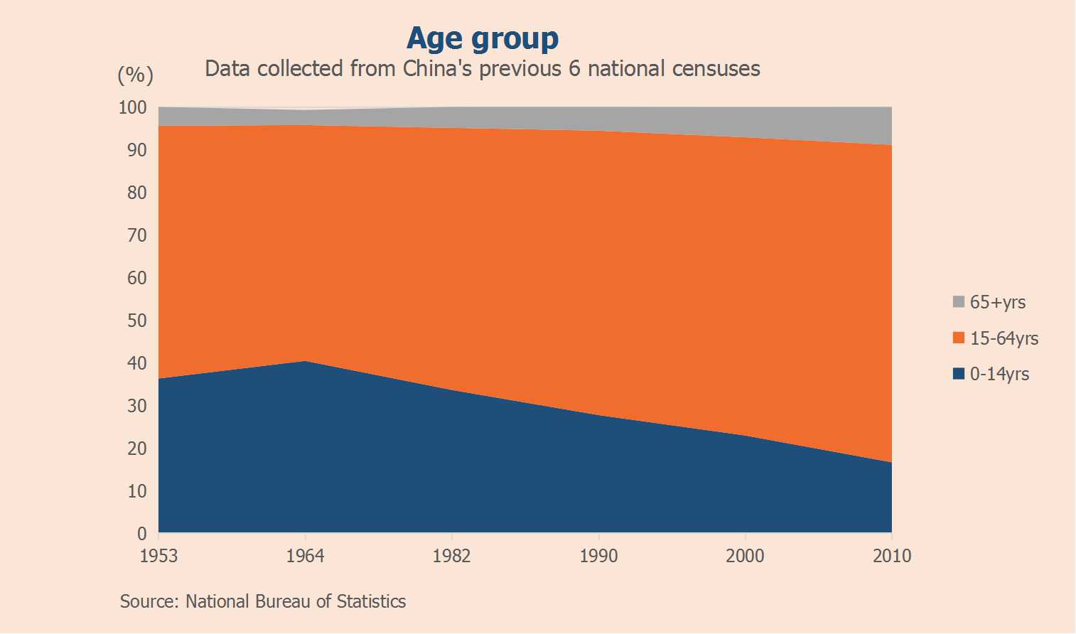 Les six recensements de la population précédents ont montré que la population du pays âgée de 14 ans ou moins a diminué en proportion de la population totale au cours des dernières décennies et que la population âgée de plus de 65 ans ou plus a augmenté.