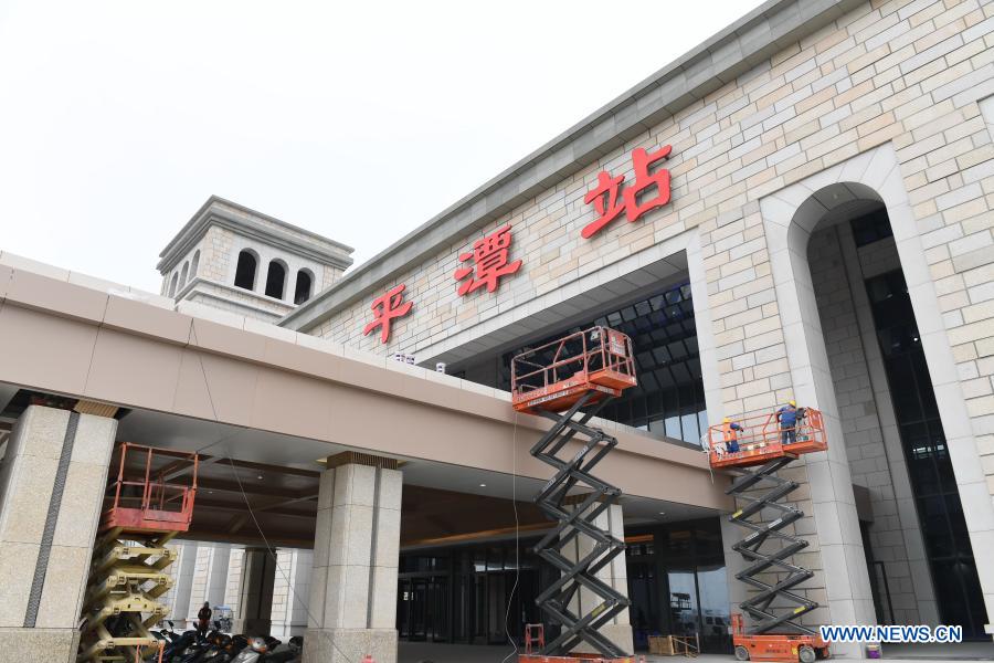 Photo montrant des ouvriers au travail sur le chantier de construction de la gare de Pingtan sur la ligne de chemin de fer Fuzhou-Pingtan, dans la province du Fujian (sud-est de la Chine), le 22 décembre 2020. Avec une longueur de 88 kilomètres et une vitesse prévue de 200 km/h, le chemin de fer Fuzhou-Pingtan devrait être mis en service d'ici la fin de l’année. (Lin Shanchuan / Xinhua)